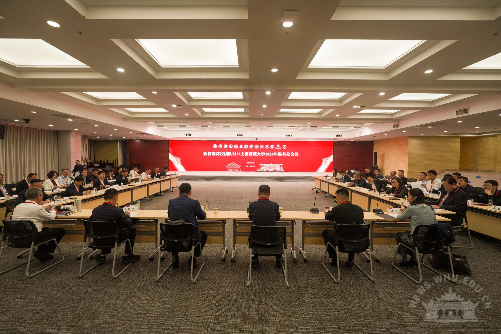 新闻网讯(通讯员雷蕾、孙庆森)4月11日,教育部高校团队对口支援西藏大学2026年秘书处会议在武汉大学召开。教育部发展规划司基本建设处处长曹飞,西藏自治区教育厅党组成员、副厅长李霁,对口支援西藏大学组长单位北京大学副校长朴世龙,副组长单位武汉大学党委书记朱孔军,西藏大学党委副书记、校长郑英宁,以及各援建团队高校领导出席会议。朴世龙主持会议。