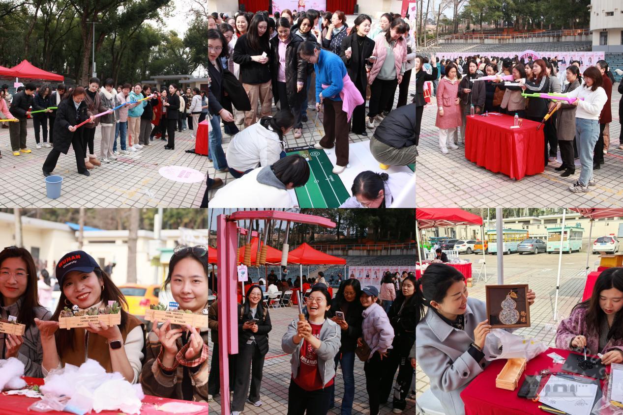 随后的游园嘉年华,将节日的氛围推向高潮。活动现场欢声笑语不断,女教职工们积极参与各项趣味游戏,彼此协作、相互鼓励,在轻松愉悦的氛围中舒缓压力,展现出积极向上的精神风貌。手工体验区同样受到欢迎,大家在专业老师指导下,亲手制作宋锦挂件、螺钿画等传统手工艺品,在动手过程中感受传统文化魅力,收获一份别样的节日体验。活动现场还设置了30名先进女教职工事迹展板,生动展现她们在教学科研、管理服务等方面的奋斗身影,引导广大教职工见贤思齐、争当先进。