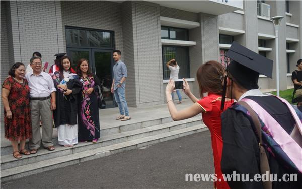 越南博士夫妇阮国治、武陈金莲携两个女儿参加毕业典礼,小女儿正是他们在武大攻读博士学位期间出生的,他们表示会支持女儿在中国发展,延续自己的珞珈记忆。