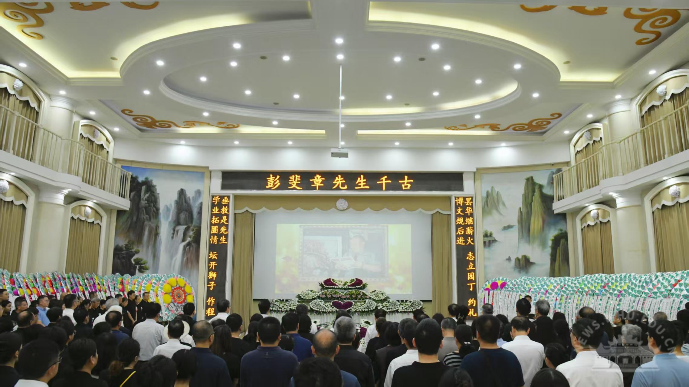湖北省委宣传部副部长赵理富,湖北省委宣传部理论处处长、省社科办主任刘超;湖南省汨罗市人大常委会副主任彭庆雄、汨罗市弼时镇党委书记高攀、副书记秦双,弼时镇铜盆村党总支书记彭彬;南开大学柯平教授,吉林大学李贺教授,南京大学信息管理学院院长裴雷教授,中国人民大学信息资源管理学院党委书记闫慧等学界同仁;武汉大学校领导黄泰岩、张平文、沈壮海、朱德友、楚龙强、陆伟、周伟,人文社科资深教授马费成、陈伟、陈传夫、肖永平,学校老领导吴平,校长助理徐东兴;兄弟院校的领导和师生代表;学校相关职能部门、学院和科研机构负责人,师生代表,以及彭斐章先生的亲属、子女、生前友好、同事及学生等参加了告别仪式。