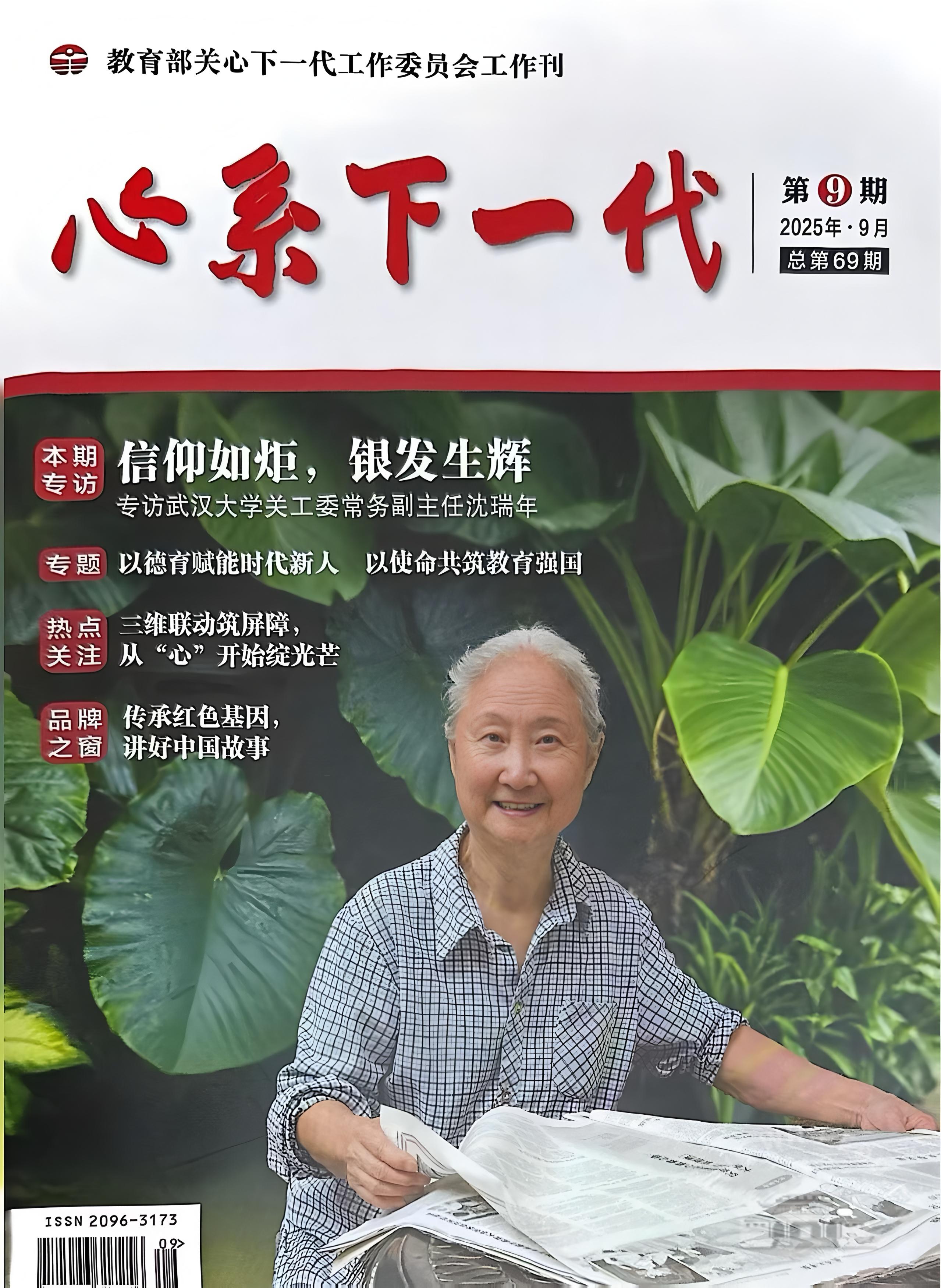编者按:《心系下一代》2025年第9期封面人物专访武汉大学关心下一代工作委员会(以下简称“关工委”)常务副主任沈瑞年。10余年来,沈瑞年在关心下一代工作的第一线尽心尽力发挥作用,在任期间学校关工委先后多次被评为全国教育系统关工委先进集体、湖北省关工委先进集体。