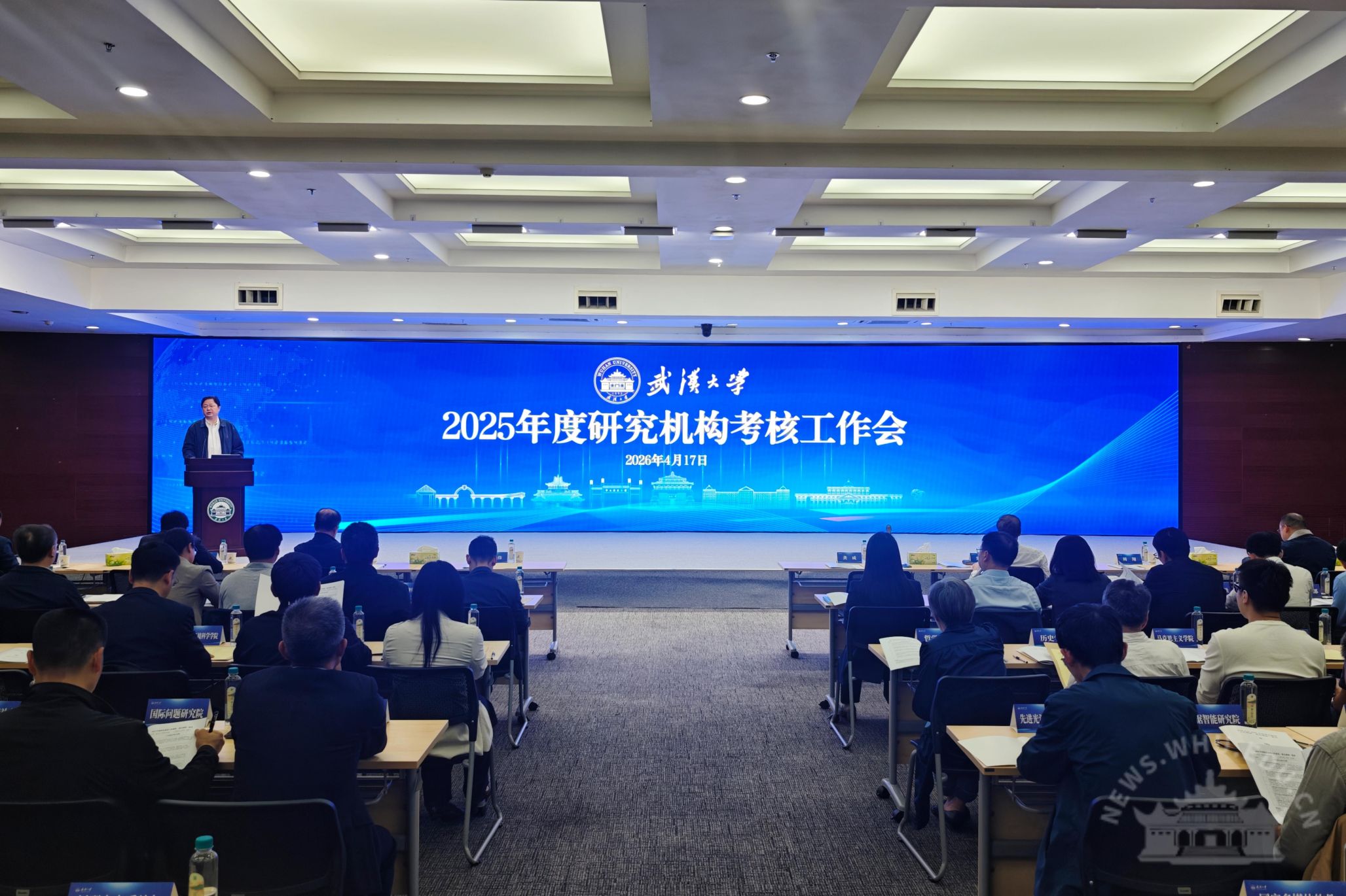 新闻网讯(通讯员张晗)4月17日,武汉大学举行2025年度研究机构考核工作会议。副校长龚威、陆伟,校学术委员会副主任周翔院士、理学部学术委员会主任朱玉贤院士、工学部学术委员会主任夏军院士等学校、学部学术委员会委员代表出席会议。