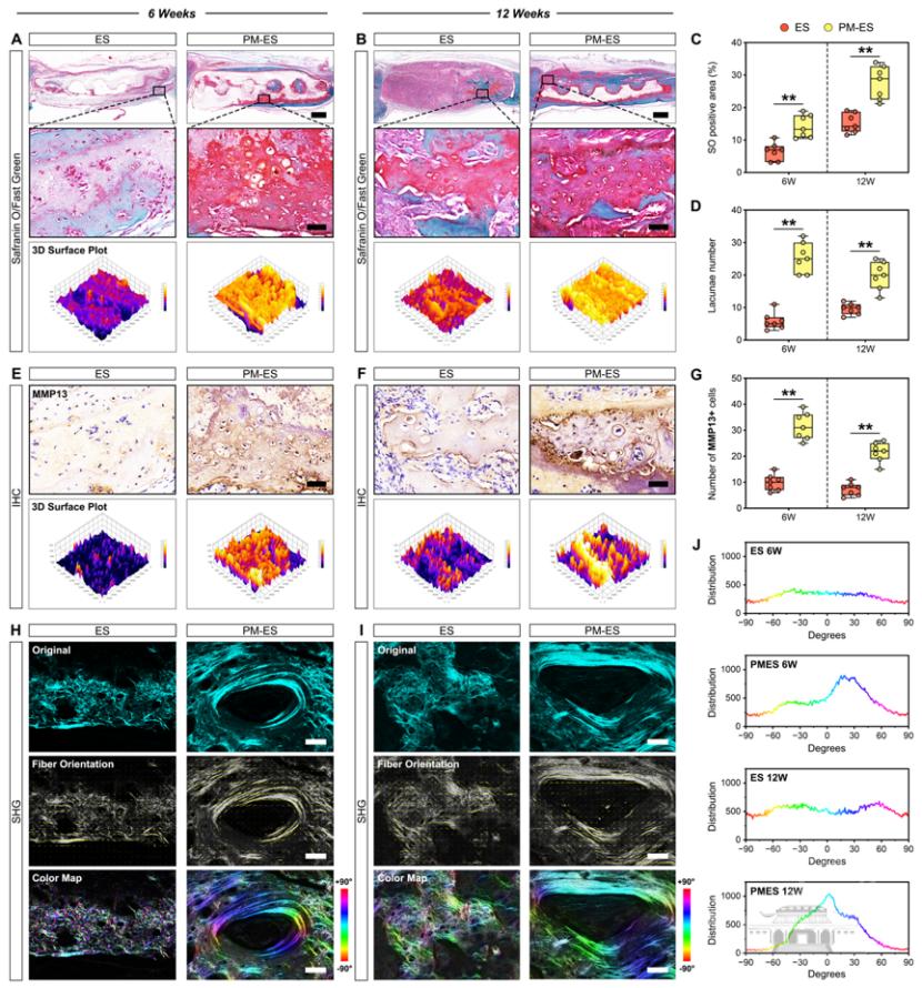 基于对软骨内骨化(ECO)介导的自然骨愈合过程的深入理解,黄翠教授团队创新性地提出了一种用于促进ECO的仿生生态位。正如温室生态系统能为植物生长提供最优的条件,仿生生态位通过重编程间充质干细胞(MSCs)的再生微环境,实现了对ECO关键阶段的高效复现。值得注意的是,即便在以IMO为主导的大鼠颅骨区域,仿生生态位同样能够启动ECO过程,促进软骨模板的形成,最终实现理想的骨修复效果。综上,本研究为新一代ECO驱动型骨组织工程材料的设计提供了前瞻性思路。