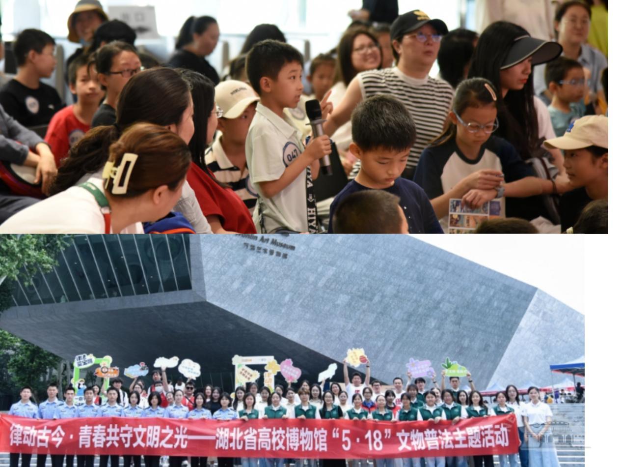 5月17日,万林艺术博物馆举办了“律动古今・青春共守文明之光”—— 湖北省高校博物馆“5・18”文物普法主题活动,吸引了武汉市近百名大中小学生热情互动。普法宣讲环节,法学院硕士研究生孙敖栩以趣味故事启程,带领现场的观众们共同踏上一段奇妙旅程,感受法律与文物的双向互动,并从新修订的《文物保护法》切入,深入浅出地讲解了核心法条的内涵,结合有趣的案例,破译文物保护背后的法律密码。在现场互动环节,法律知识问答、趣味抢答轮番上阵,小朋友们争相举手,在互动中切身体会了“法护文明”的重要性。文保情景剧环节,万林艺术博物馆志愿者们的生动演绎使观众们时而屏息凝神,时而捧腹大笑。普法游园会吸引了大批观众参与,摊位前人头攒动,现场气氛热烈。