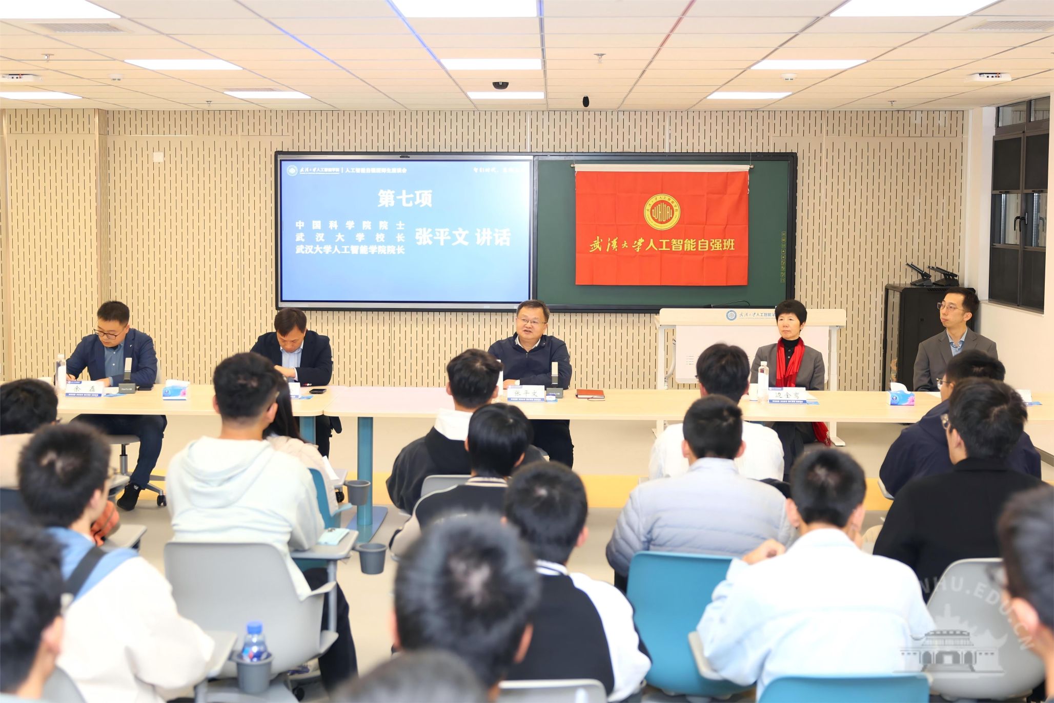 新闻网讯(通讯员徐浩宸、高诗桐、王为韬)“少了在座的任何一位,我们都不是自强班。”班长张启航话音落下,教室里响起一片默契的掌声。10月26日,2025级人工智能自强班的同学们迎来了一场特殊的班会——武汉大学校长、人工智能学院院长张平文院士来到他们中间,与这群刚刚踏入珞珈山的新主人围坐畅谈。