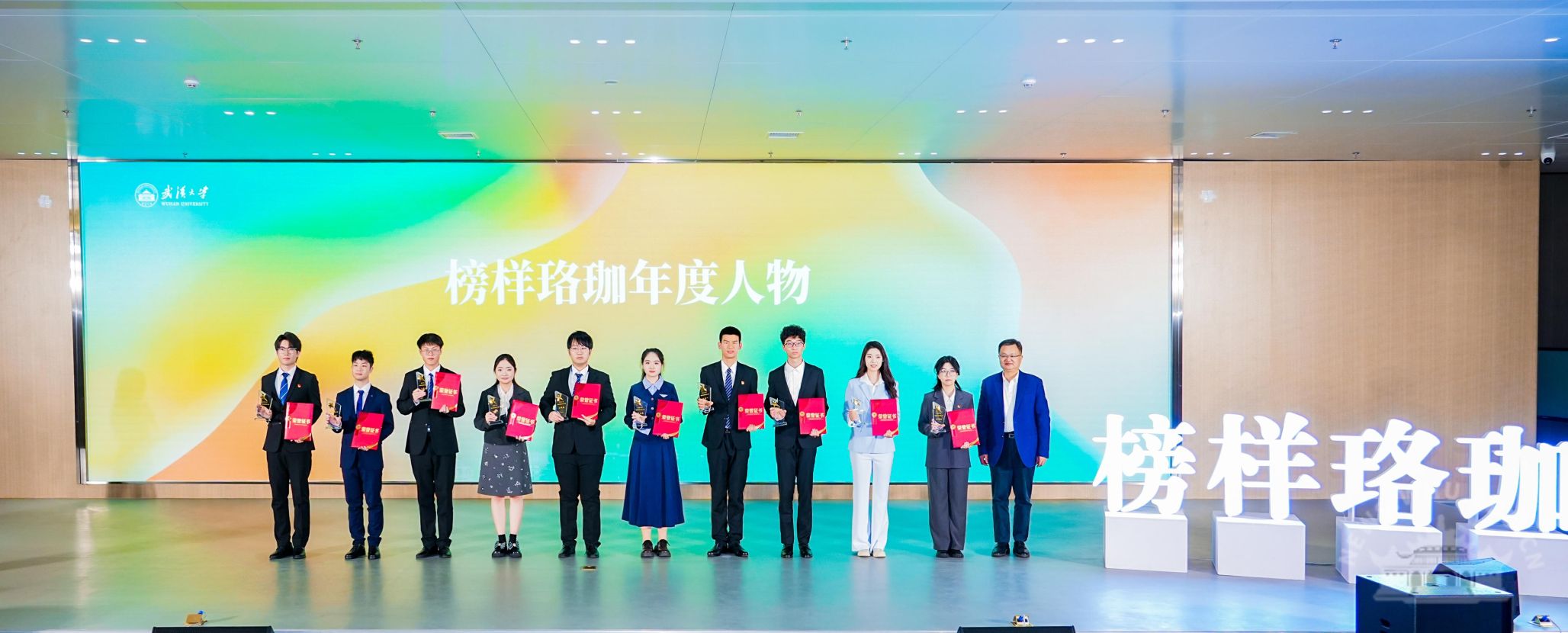 颁奖典礼围绕“初心”主题,以“发现初心、传递温暖、奔赴使命”为主线,依次颁发了国家奖学金、三好学生标兵、专项奖学金、“榜样珞珈”年度人物及“立德树人奖”等奖项,并向朋辈互助导师颁发了聘书。