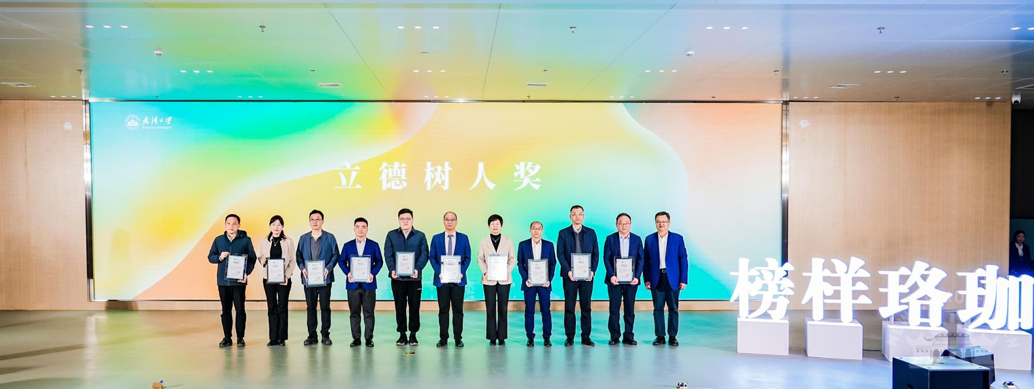 据悉,“榜样珞珈”评选活动已连续开展九年,每年通过学院推荐、学校评审、现场答辩等环节遴选出十名本科生年度人物。为着力提高育人力量责任感和协同性,学校在班级导师、本科科研导师、烛光导航师、专业教师、学工队伍中遴选十名坚守育人初心、传道授业的教师颁发“立德树人奖”。