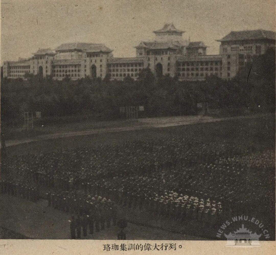 1938年武昌珞珈山军事训练场景。武汉大学档案馆(校史馆)馆员、周恩来旧居策展人吴骁 供图