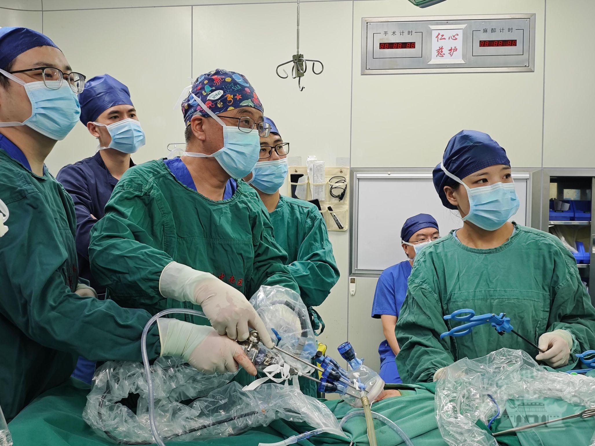 张文给患儿做腹腔镜手术