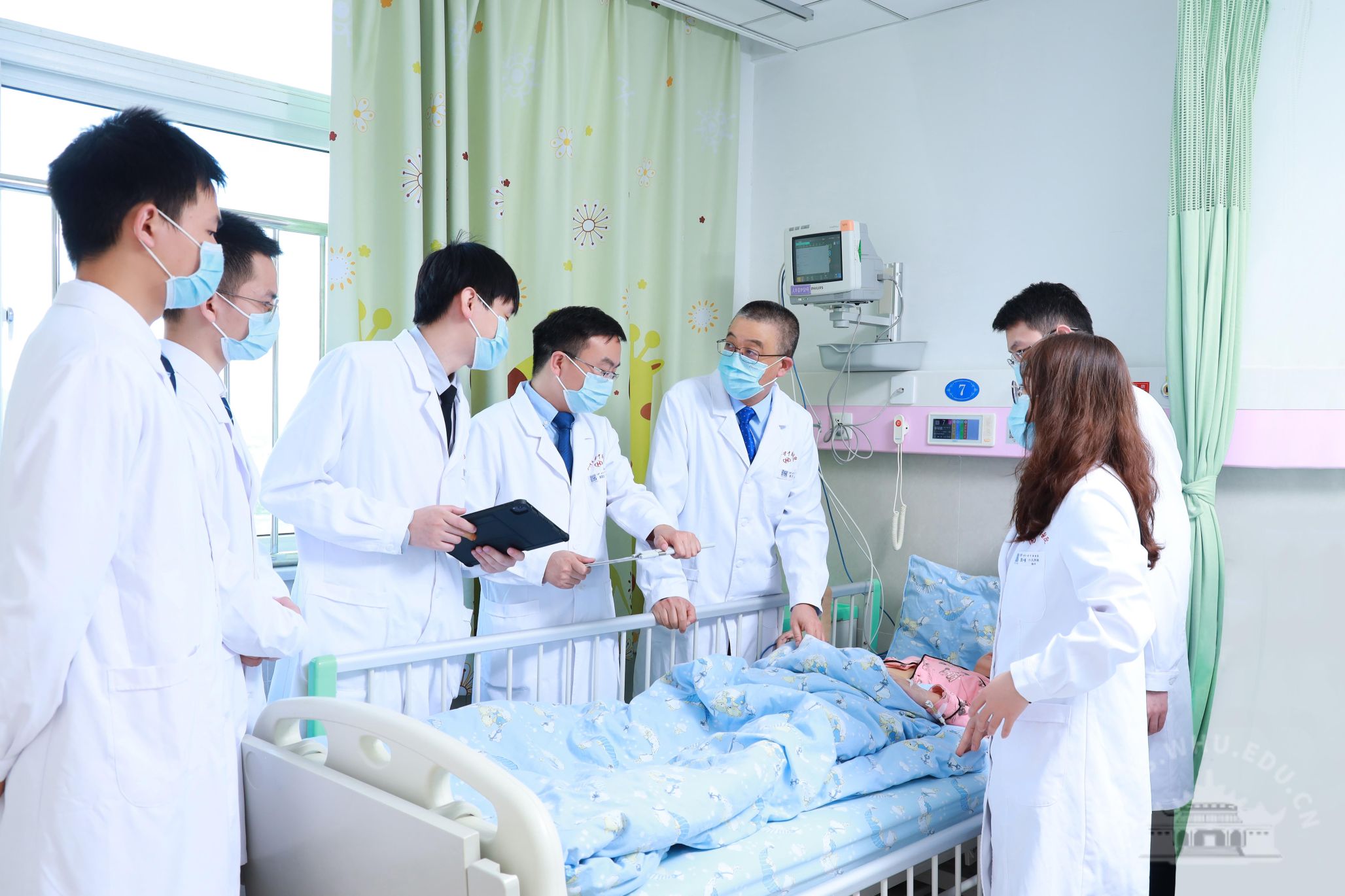 张文和团队医生讨论患儿病情